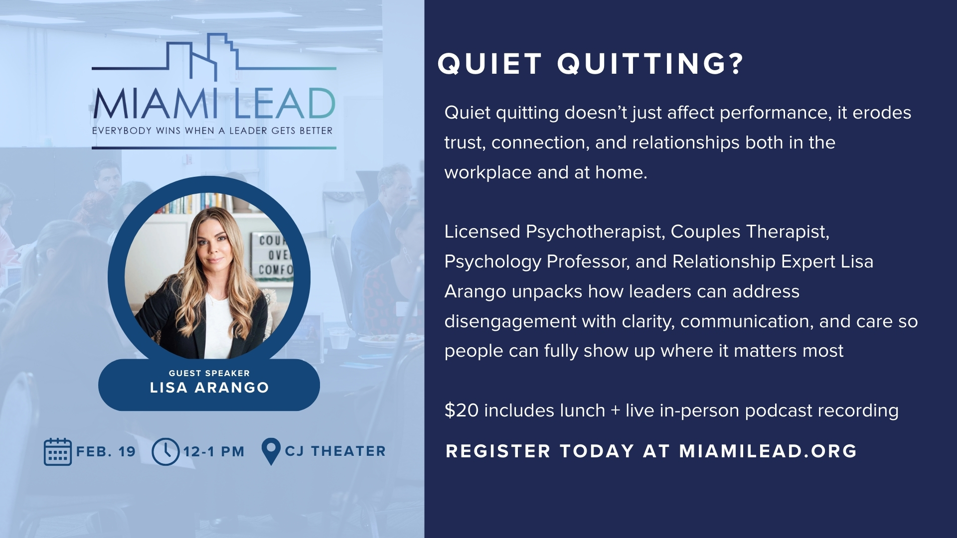 In this episode, Lisa Arango dives into a conversation many leaders are quietly facing: quiet quitting — and how it doesn’t just impact productivity, but relationships at work and at home.
